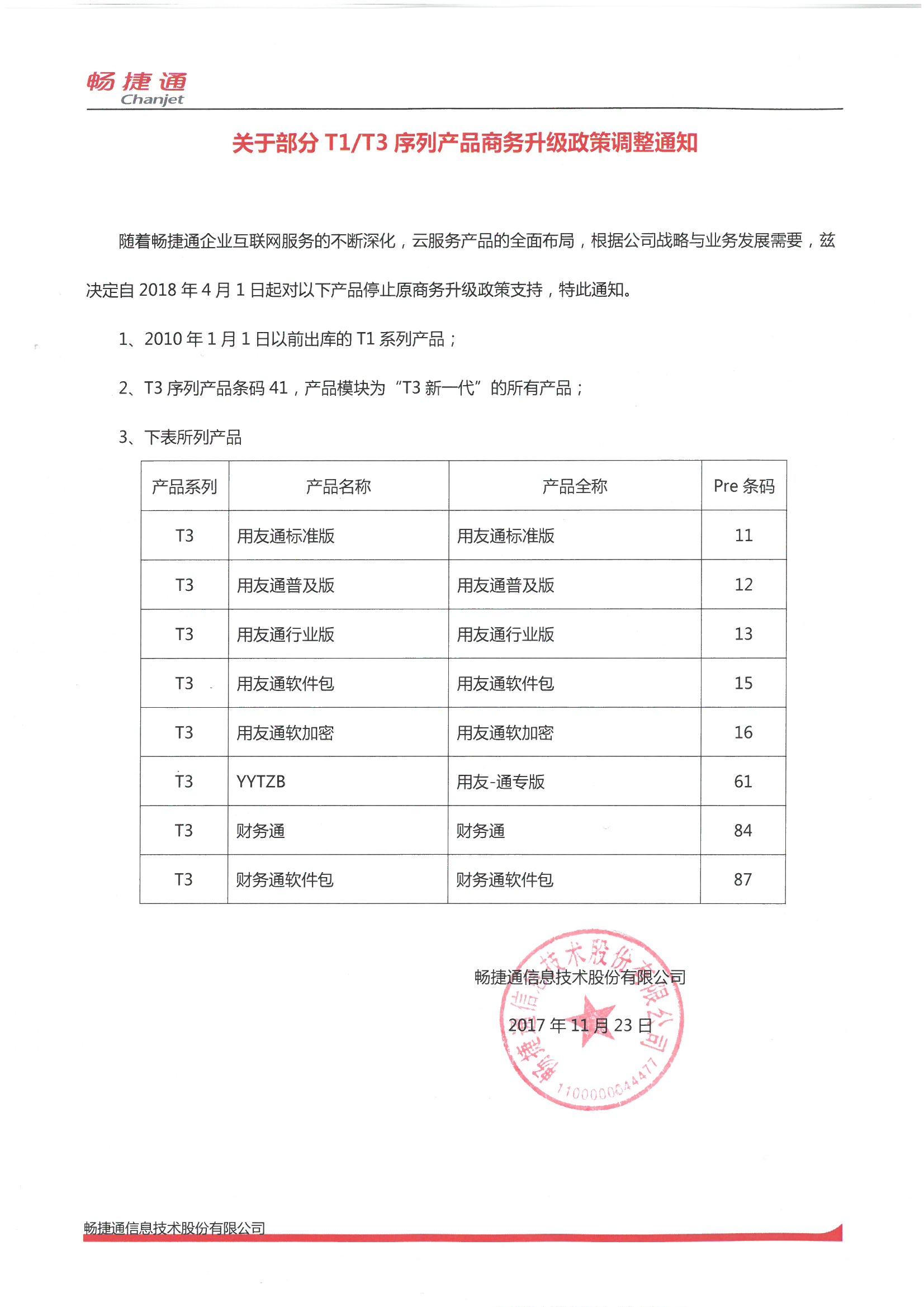 ? ?關(guān)于部分T1、T3序列產(chǎn)品商務(wù)升級(jí)政策調(diào)整公告