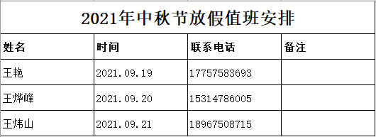 2021年中秋節(jié)假期將至,首先紹興用易企業(yè)管理咨詢有限公司向各位新老客戶致以節(jié)日的問候和誠(chéng)摯的祝福,感謝您一直以來對(duì)我公司的信任與支持?,F(xiàn)根據(jù)國(guó)務(wù)院辦公廳公布的《2021年節(jié)假日安排的通知》的有關(guān)規(guī)定,結(jié)合我公司實(shí)際情況,現(xiàn)我公司將2021年中秋節(jié)放假事項(xiàng)通知如下: