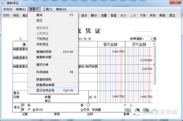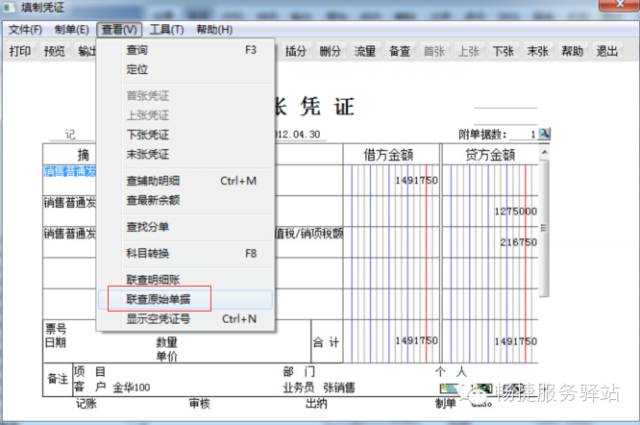 2、再點(diǎn)擊查看下的“聯(lián)查原始單據(jù)
