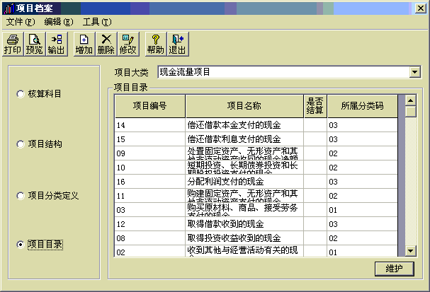 四、 項目目錄:項目目錄---維護---增加類似于25、26的兩項目錄