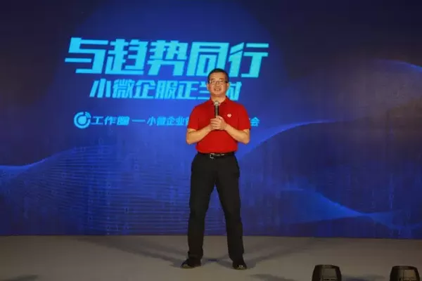 9月21日,工作圈云平臺(tái)發(fā)布會(huì)現(xiàn)場(chǎng),暢捷通總裁曾志勇致辭