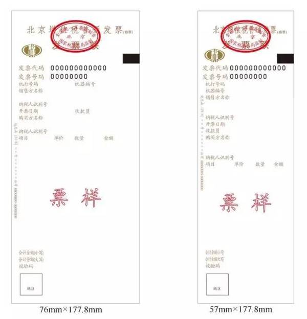 增值稅普通發(fā)票(卷票)分為兩種規(guī)格:57mm×177.8mm、76mm×177.8mm,均為單聯(lián)。